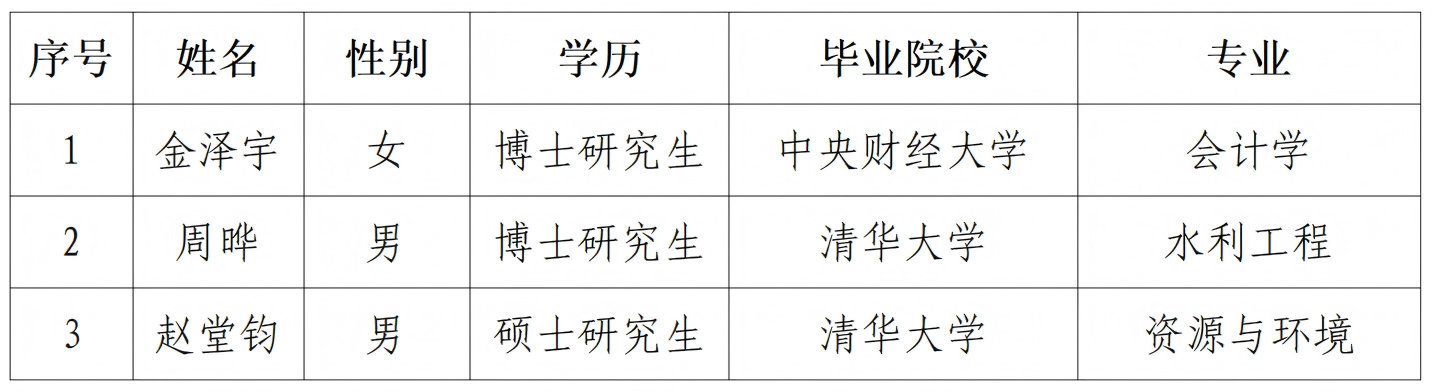 根據有關規定,現將中國南水北調集團水網發展研究有限公司2025年秋季公開招聘擬聘人員名單公示如下: