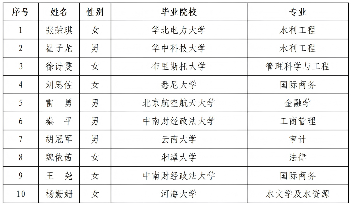 根據有關要求,現將中國南水北調集團水網智慧科技有限公司2025年度秋季公開招聘擬聘人員名單公示如下:
