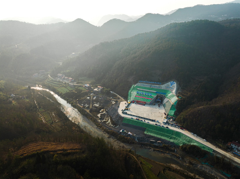 1月8日,在湖北省襄陽市保康縣馬良鎮(zhèn)拍攝的引江補(bǔ)漢工程輸水隧洞8號平洞施工現(xiàn)場。 新華社記者 肖藝九 攝