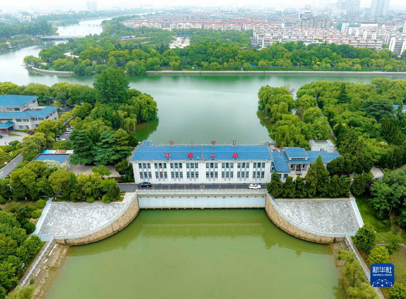 這是6月1日拍攝的位于江蘇省揚州市江都區的南水北調東線源頭江都水利樞紐二站(無人機照片)。